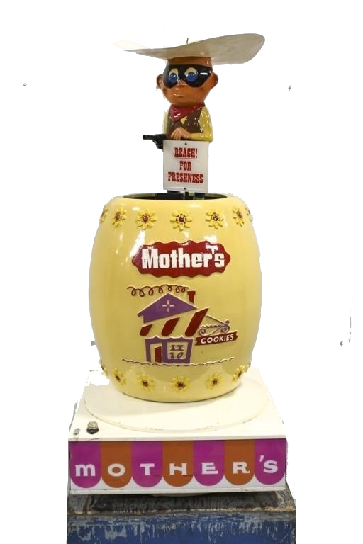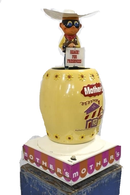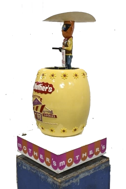 Classic signage featuring the cowboy for Mother's Cookies.
