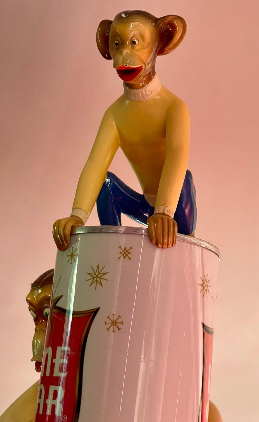 Like the clown, each monkey display carried its own twist: one might juggle bottles, another might hold onto a spinning beer can, while others tipped their hats or strummed instruments. With subtle variations in design and movement, Stanley gave each figure a distinct personality.