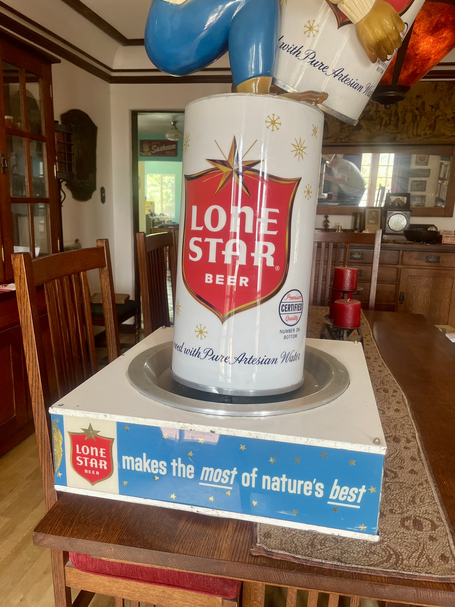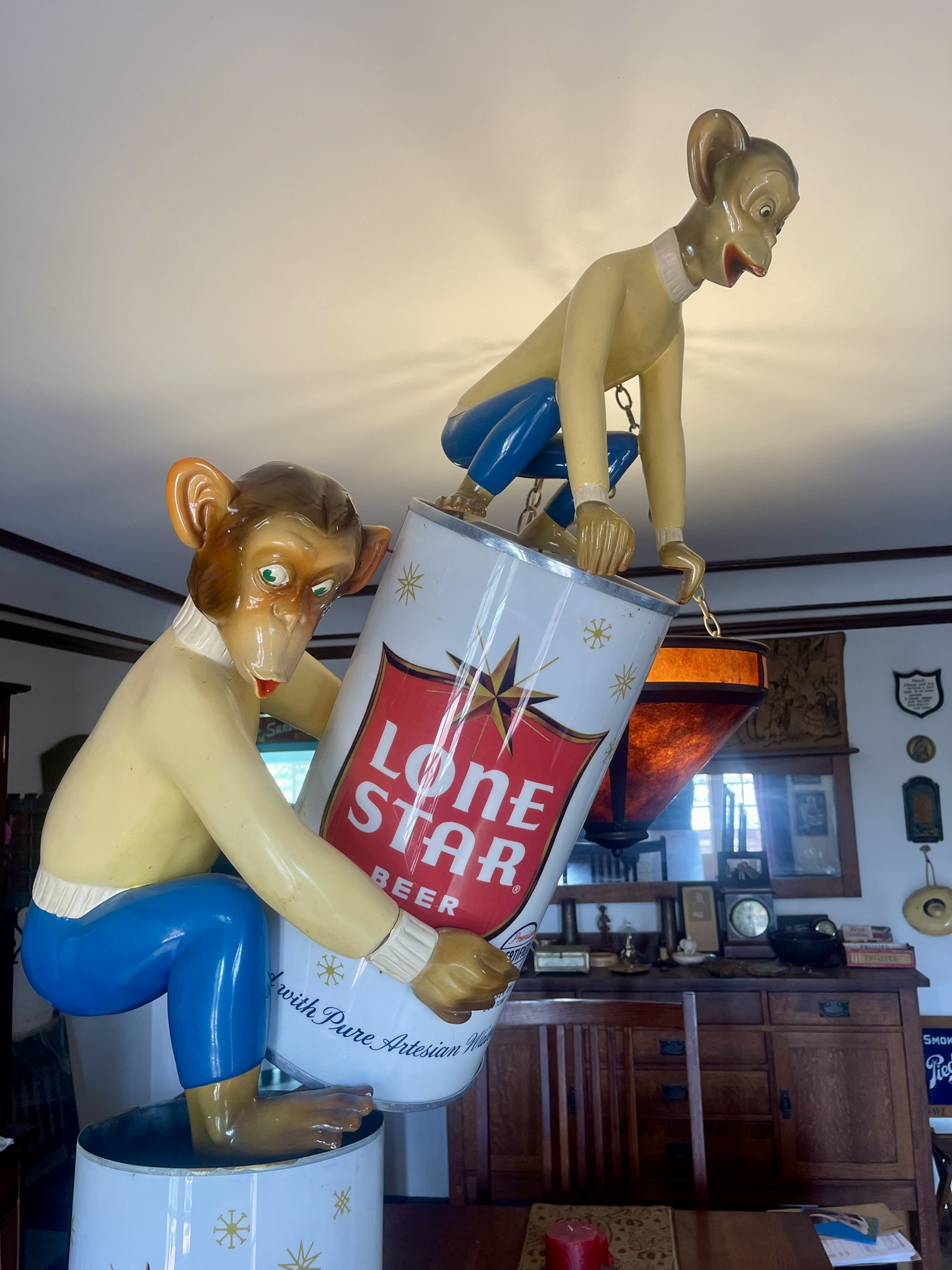 Classic signage featuring "Curious George" for Lone Star Beer.